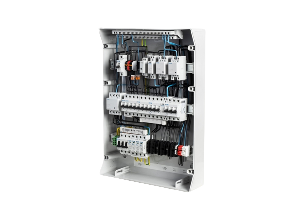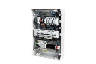 AC rozváděč určený pro montáž na zeď, IP65 sloužící pro obsluhu třífázové fotovoltaické elektrárny (typicky střídač Goodwe 4 až 10K-ET).
