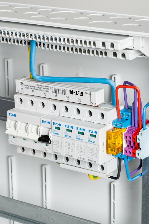 V rozváděči je osazen svodič přepětí AC T1+T2, jistič B50/3 pro jištění vstupu do střídače. Dále Jistič B2/1 který jistí PATICI/RELE Finder, které zajišťuje N0% pro splnění podmínek distribucí (součástí je jak NC, tak NO kontakt a střed.) Čímž je zajištěno použití pro všechny typy měničů na trhu.