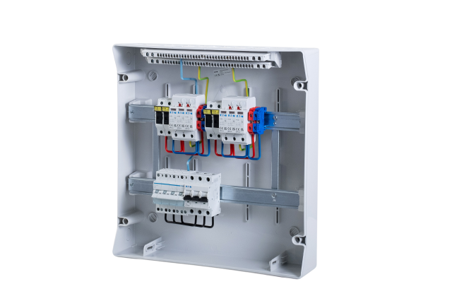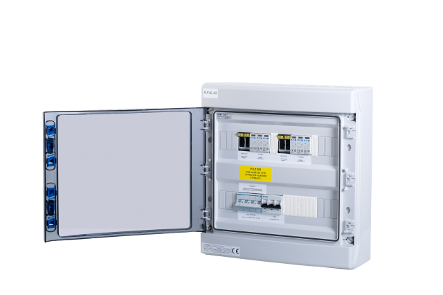 AC+DC rozváděče určené pro montáž na zeď, IP65, slouží pro obsluhu třífázové fotovoltaické elektrárny v kombinaci s přepínačem (typicky střídač GoodWe 4 až 10K-ET).