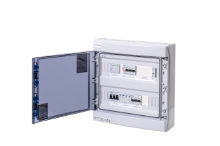 AC+DC rozváděče určené pro montáž na zeď, IP65, slouží pro obsluhu třífázové fotovoltaické elektrárny v kombinaci s přepínačem (typicky střídač GoodWe 4 až 10K-ET).