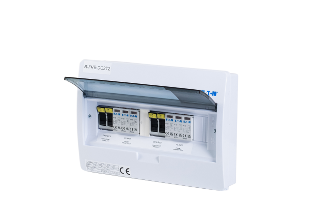 DC rozváděč určený pro montáž na zeď, IP40/20 sloužící jako vstupní rozváděč od fotovoltaických panelů (ke střídači) pro celé portfolio fotovoltaických elektráren. Zejména při použití ostatních rozváděčů taktéž EATON BC-O-1/12-ECO.
