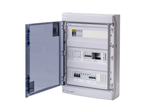 Rozváděč EATON IKA-3/54-ST, svodič přepětí třídy T1+T2 EATON SPBT12-280/4, hlavní vypínač EATON IS40/3, jištění střídače EATON PL6-B16/1, stykač včetně hlídacího relé ELKO HRN-55 a stykač EATON Z-SCH230/40-40, jištění pro měření a řízení, jističe EATON PL6 + relé pro ovládání krizového HDO. Svodič přepětí EATON SPPVT12-10-2+PE nebo EATON SPPVT2-10-2+PE. Pojistkové odpínače EATON CHPV2U včetně pojistek gPV EATON PV-15A10F.